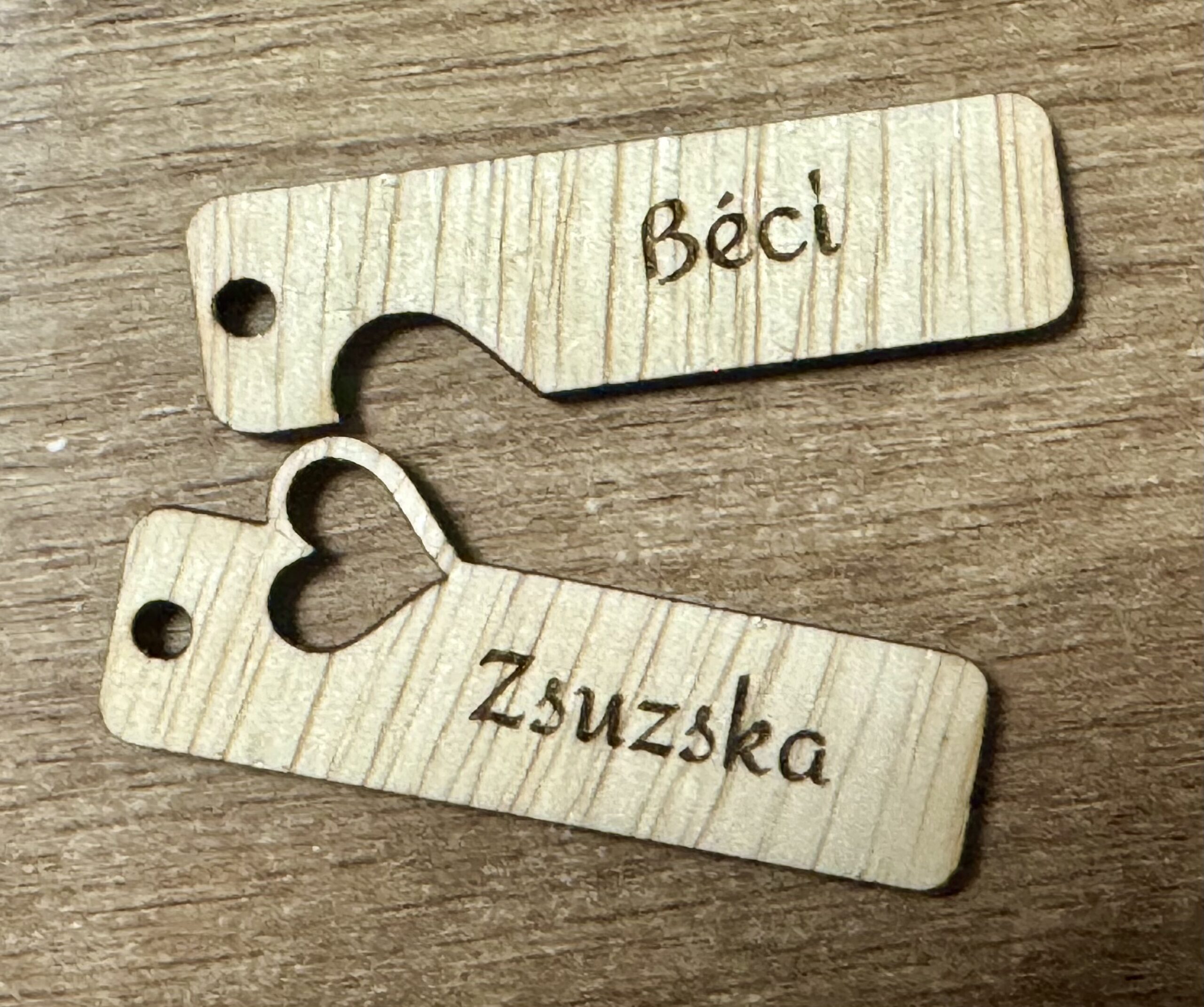 Minimalista dizájnja miatt tökéletes választás azoknak a pároknak, akik szeretik az egyszerű, mégis beszédes ajándékokat. A fa kulcstartók egyedi gravírozással készülnek, így személyes üzenetet hordoznak.